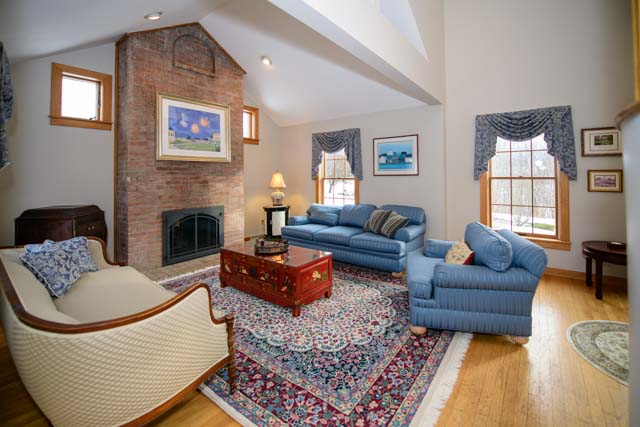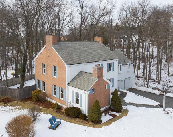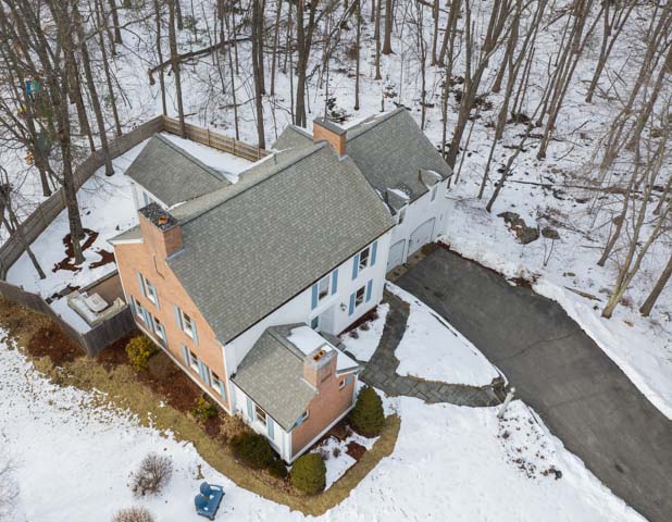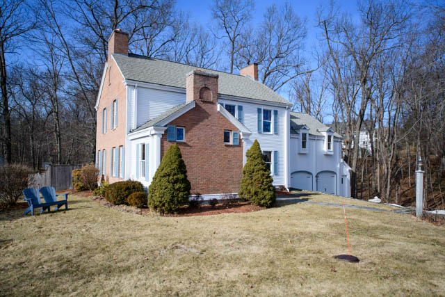 SOLD $556,000 6-28-19 LISTED FOR $625,000 Handsome Brick & Clapboard Custom Built Colonial In One Of North Andover’s Premier Neighborhoods. Beautifully sited on a private acre lot atop Bear Hill, this house offers a spectacular open floor plan design with cathedral ceilings, curved staircases, dramatic living room with fireplace, dining room with built-in hutch, step saving smart contemporary style kitchen with built in table & newer SS refrigerator and dishwasher, family room with sliders to the patio and fenced yard, spacious master bedroom with exposed beams, WIC & a private marble bath, 3 well proportioned additional bedrooms, restful den/ office with fireplace & built-ins for pleasant evenings at home, finished playroom in the lower level with abundant additional storage. New garage doors (2016), roof (2006), high efficiency hot water heater (2017), PERFECT FOR A BUYER SEEKING A PRIME LOCATION AT A REALISTIC PRICE. DON’T WAIT, MAKE IT YOURS.