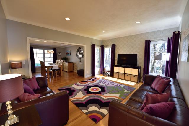 SOLD $752,000 04/17/17 Enjoy a life full of beautiful moments in this colonial home with a contemporary open floor plan. Ideal for entertaining, note the 9′ ceilings, open living room/dining room, center island stainless steel granite custom kitchen opens to a light and bright family room with wood burning fireplace. The attached garage means just a few stairs to enter. Features include: Well proportioned bedrooms and master with an adjacent sitting room, his and hers walk in closets, and luxurious bath, central air, finished lower level with custom bar, media area and room for a game of ping pong or pool. Beautifully sited with great presence on this cul de sac lot, this home offers an extensive playground, vegetable garden, specimen plantings and more. See list of recent improvements in MLS. Ideally located for commuters, school access, East Boxford center and shopping. Embrace the good times!