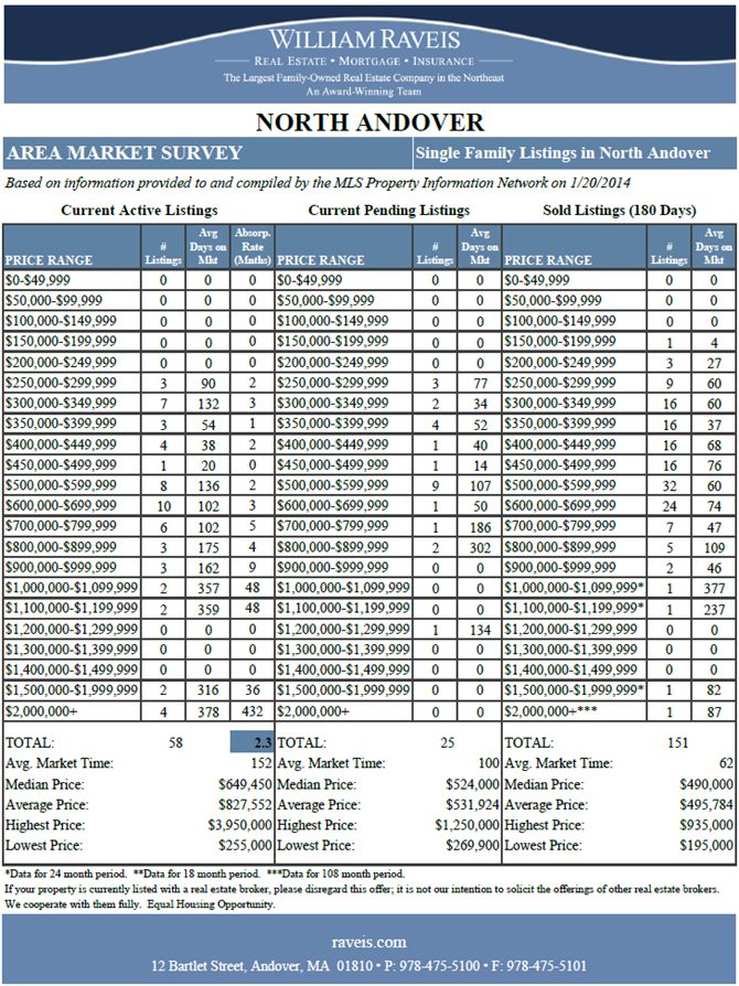 North Andover Real Estate Market Survey Jan 2014